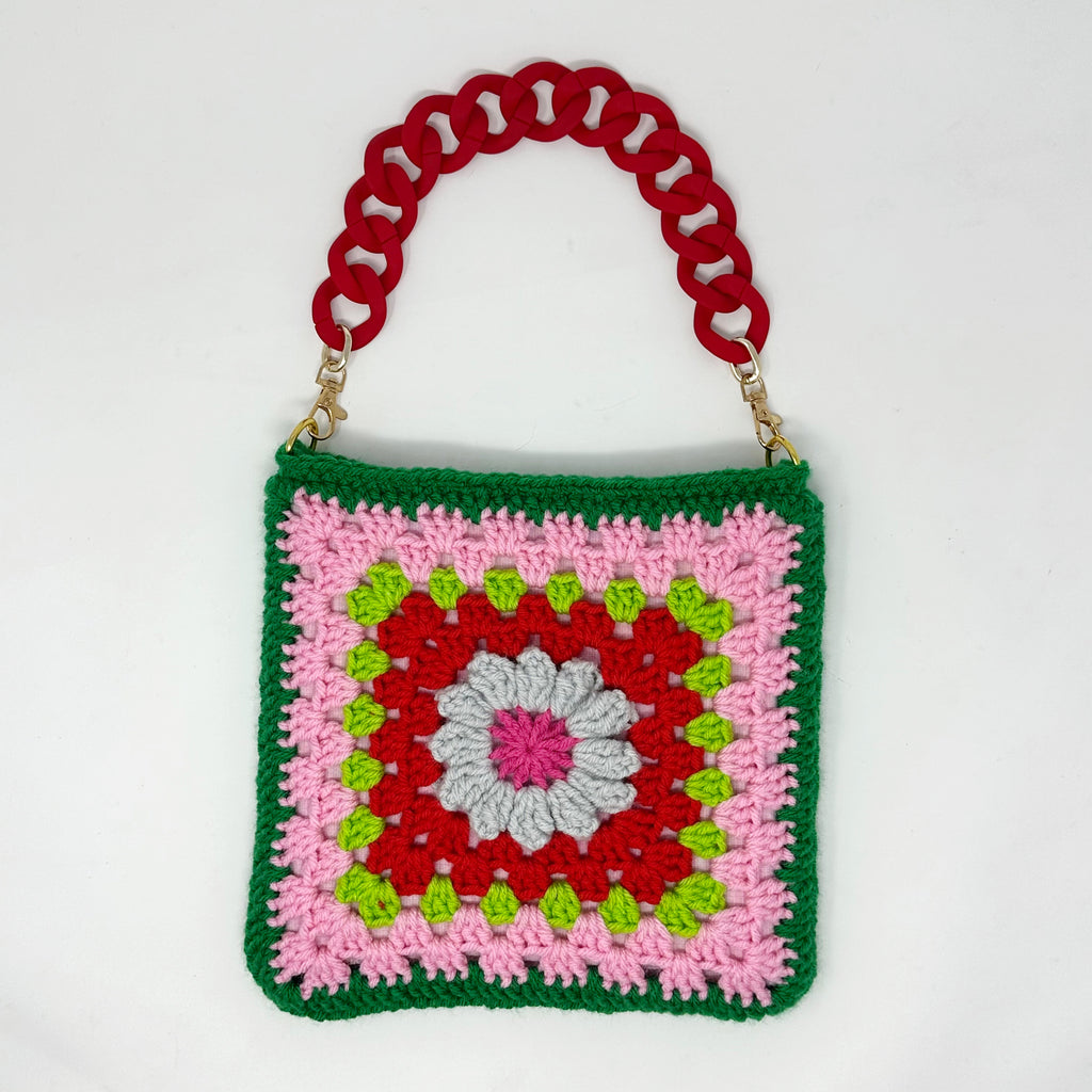 Strawberry Pie Flower Crochet Granny Square Handbag