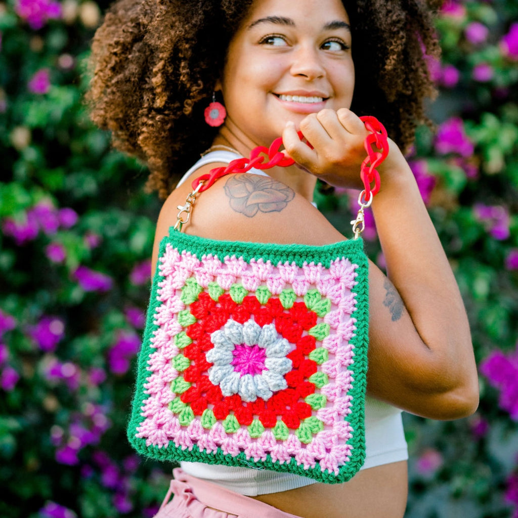Strawberry Pie Flower Crochet Granny Square Handbag